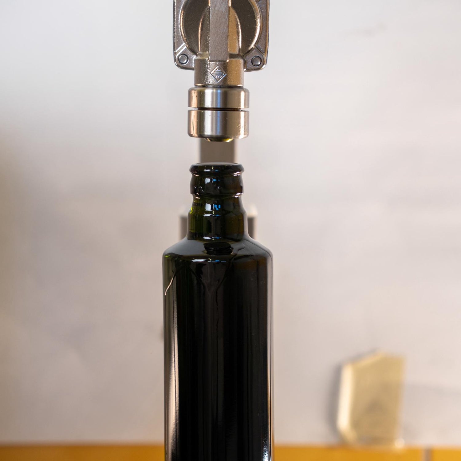 Dopo la decantazione, l’olio viene trasferito in bottiglie scure che lo proteggono dalla luce e ne preservano gli aromi. È un momento di grande cura, perché qui la freschezza conquistata in frantoio deve rimanere intatta fino alla tavola.
